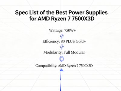Power Supply Spec List of the Best Power Supplies for AMD Ryzen 7 7500X3D Let’s be direct. Selecting a power supply unit (PSU) based on the AMD Ryzen 5 ...