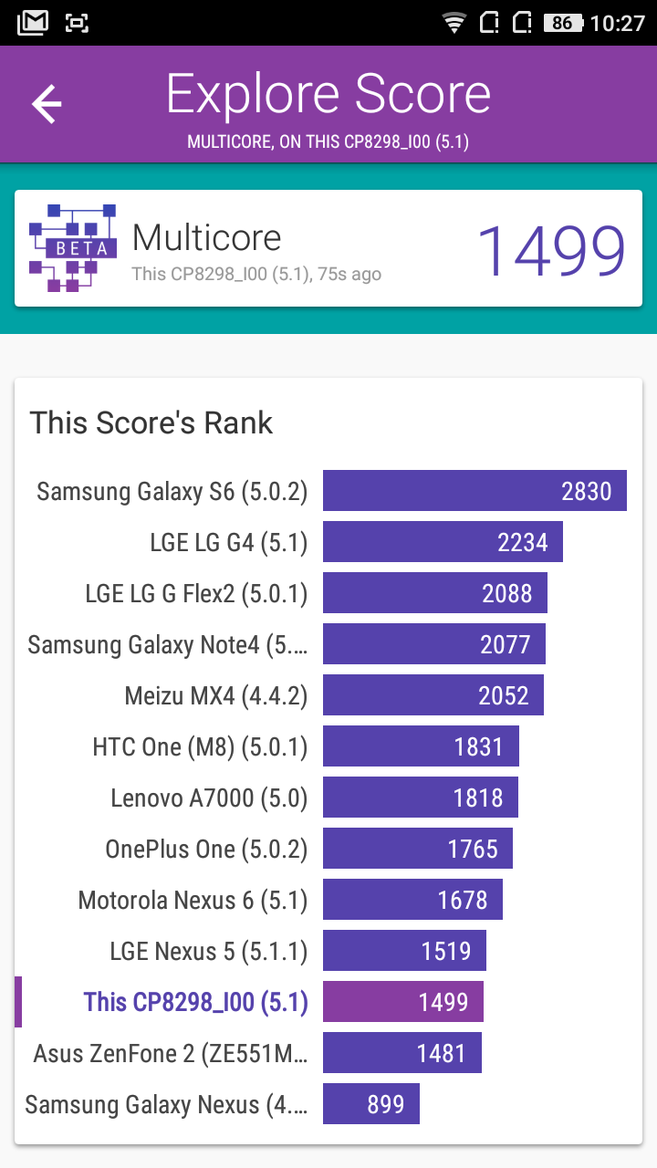 Google Coolpad Note 3 Lite Performance Benchmarks March 31, 20163477 views0 Share Coolpad Note 3 Lite is an entry-level phone with a decent specification for the price. See my previous post for the phone specifications. So how does it perform and stand against the competitors? Note: If you buy something from our links, we might earn a commission. See our disclosure statement. CPUZ detects this as a MediaTek Quad Core chipset found on a majority of the devices in this price range. Chipset Hardware Software Battery CoreTemperature Sensors Geekbench 3 received a score of 1812 which is on par with low-end devices or high-end devices released in 2013. On the Vellamo mobile benchmark, its performance is on par with an Asus Zenphone 2 or an LG Nexus 5 running the Qualcomm Snapdragon 800 processor. On the Quadrant Standard Edition benchmark, it received a score of 12364. This, we think is quite a decent performance, keeping in mind that a few years ago, you had to pay 500$ plus for this kind of performance. Battery Benchmarks: The battery is only 2500 mah, which is not huge by today’s standards, but we usually get a 2000 mah battery in this category. The charge time is unusually high, with a full charge time of 2.5 hours using a high-speed 2A charger. The Disk Performance is where it performed the most in this price range. 161 MB/s read and 41 MB/s write speed is HDD class speed from a decade ago. Overall, the Phone performance is above average, considering the price range. I give big thumps up and recommend you to go for it. Buy Coolpad Note 3 Lite Now from Amazon India Website: Black Front Black Backside White Front Affiliate Disclosure: Faceofit.com is a participant in the Amazon Services LLC Associates Program. As an Amazon Associate we earn from qualifying purchases. Share What's your reaction? Excited 0 Happy 0 In Love 0 Not Sure 0 Silly 0