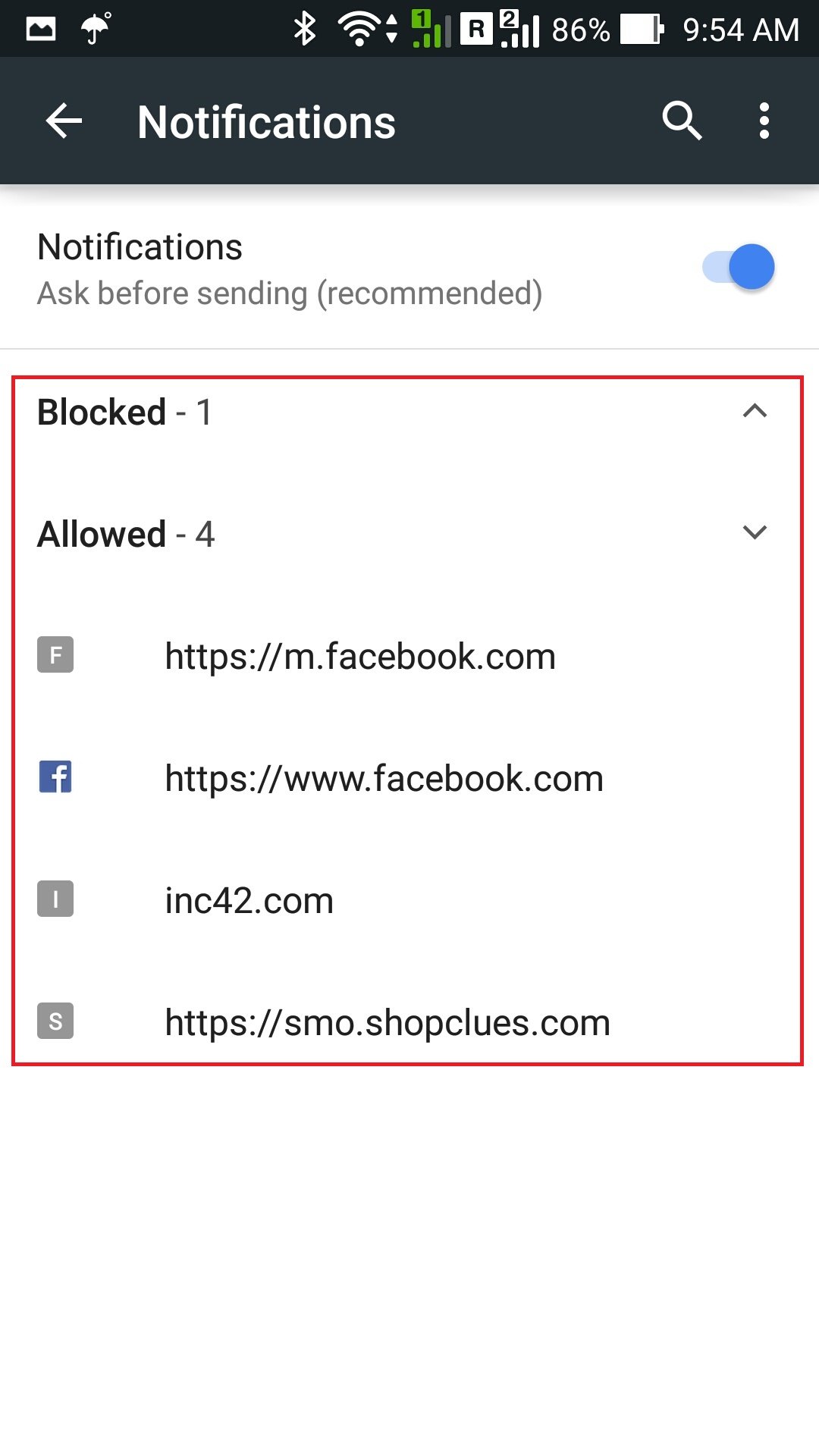 By default, you’ll receive an alert from Chrome when a site wants to show or push notifications to your phone.