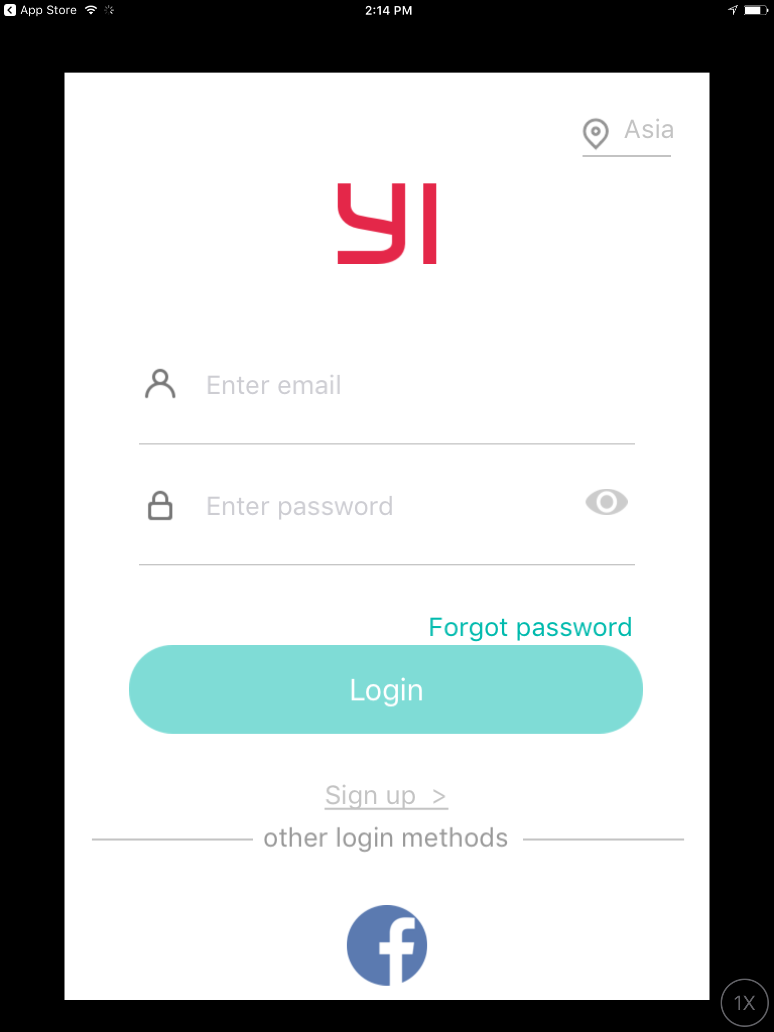 • In order to use the app, you need to sign up first. In order to sign-up, you have two options, Facebook, & Yi Account. For a single user usage, use the Facebook login, that is, if you have a Facebook account. If not, then create a Yi account and login with its credentials. Note: If you want to share the camera feed with your friends and family, then create a Yi-account instead.