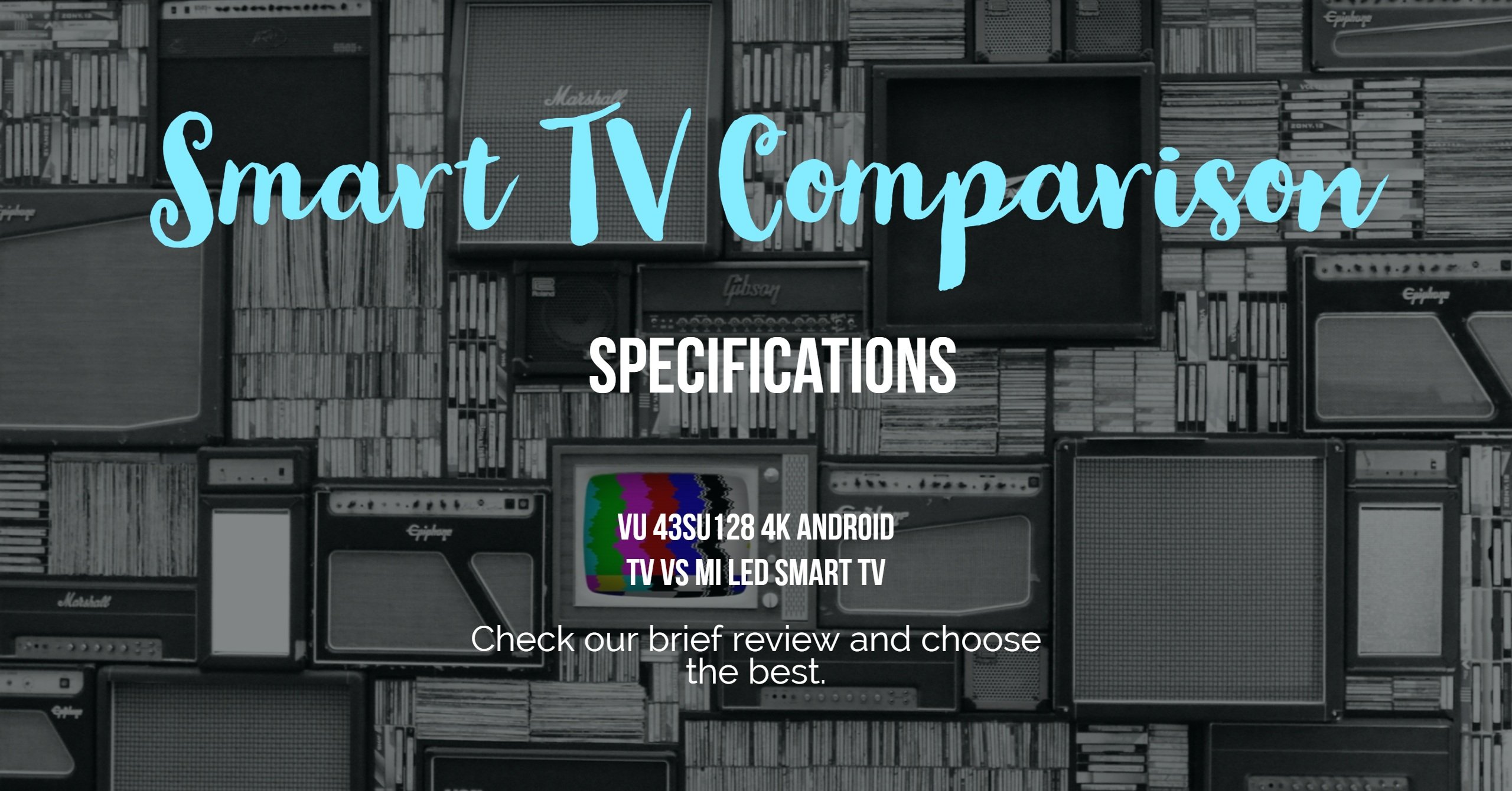 Smart TVsTech Posts VU 43SU128 4K ANDROID TV Vs MI LED Smart TV 4A 43-inch Smart TV April 1, 20189652 views0 Share By IG Share Smart TVs had already hit the market a long time ago, but they were too expensive at that time. But as the technology is evolving, we see the more technologically advanced products at lower price points. So in this post, we are going to compare two Android OS based 43-inch smart TV’s that is quite popular these days. We have made a brief comparison of VU 43SU128 4K ANDROID TV Vs MI LED Smart TV. Note: If you buy something from our links, we might earn a commission. See our disclosure statement. Television plays a very significant role in everyone’s life. Tv is a source of communication and information. It is a flexible and powerful tool that affects the public to a great extent. It has become an essential part of modern life. TV has changed a lot since the 3-inch screens of the early 20th-century to the smart TVs that one could buy at a price of the mid-range smartphone. As the TVs has become smart now, we can access a large number of channels that offer TV programs, movies, music, without having to connect a TV antenna. Along with this, smart TVs also provides options for web browsing and gaming, as well as access to compatible media content stored on your PC over WiFi. You can also do Miracast and screen sharing which allows users to view content from compatible smartphones and tablets on a TV screen. Two famous brands of smart TV in the market are VU and Xiaomi that offers affordable TVs and gadgets. VU is an older brand in TV market. Xiaomi is quite famous for making affordable phones, and now it has stepped into the smart TV market. Xiaomi Might be new on the Smart TV but not a weak player. Both these TV makers are looking to gain control over the TV market in India with their new lineups. They are the mighty competitors to each other and offers the similar specifications and quality at matched price points. This often creates confusion in the customer’s mind. So, here we are going to compare both these televisions so that you can choose best for you according to your needs. VU 43SU128 4K ANDROID TV Vs MI LED Smart TV VU 43SU128 Smart TV VS MI 43-inch Smart LED TV Features MI LED TV 4 43-inch VU 43-inch Smart TV Display Size full HD 1920 x 1080 pixels LED TV, 178-degree viewing angle 3840 x 2160 Resolution A+ grade IPS LED display, 178-degree viewing angle In The Box  TV Set User Manual Screws Power Cord Remote Control (without batteries)  1 TV Unit Remote Controller 2 AAA Batteries Power Cord Cable Tie User Manual VESA Wall Mount Processor  Amlogic Cortex A53 quad-core up to 1.5GHz, Mali-450 MP3 up to 750MHz  Quad-Core Processor RAM  1 GB  2.5 GB Storage  8 GB  16 GB Speaker  10 x 2-watt Stereo, DTS Decoder  10+10 Watt Box Speaker, DTS TruSurround and Dolby Digital decoder Power Requirement 100-240V~50/60Hz AC 100 – 240 V, 50/60 Hz Power Consumption  75W  75 W, 0.5 W (Standby) Wireless Connectivity  2.4GHz 802.11 b/g/n  Bluetooth, WiFi Connectivity 3 x USB 2.0 3 x HDMI (1 contain ARC), 1 x AV, 1 x Ethernet 1 x USB3.0 1 x USB2.0 3 x HDMI 1 x Ethernet Weight  7.43 kg including base  11.9 kg  (with stand) Dimension  969.7 mm x 611.1 mm x 209.4 mm (with stand)  1106 mm x 600 mm x 215.9 mm (with stand) Warranty  1-year  1-year VU is an Indian TV manufacturing company that launched its first smart TV 43SU128 4K Android TV in March mid to provide competition to Xiaomi into the Indian television market with cost-effective models. The VU Smart TV runs on Android 7.0 Nougat operating system, and the company has also announced that the device will receive Android 8.0 Oreo update soon. On the other hand, Xiaomi’s smart TV also comes with the Android operating system and is topped with the layer of company’s own PatchWall UI layer. The company has not announced anything about the OS update later on. VU TV comes with two remotes where one remote is regular, while the other remote is a smart remote. The Mi TV comes with only one smart remote. The intelligent remote on the VU TV  provides you the feature of voice search, but MI TV remote has no such function yet. VU Android smart TV comes a 43-inch A-grade IPS LED display with 3840 x 2160 pixels resolution. Whereas, the Mi 43-inch LED TV has a resolution of 1920 x 1080 pixels. The VU offers crisper and defined pictures. But the Mi takes the points with its bezel-less display and frameless design. That provides a better user experience in this price segment in comparison to VUs. Talking about the refresh rate and contrast ratio both have the same refresh rate of 60Hz and contrast ratio of 6000:1. Talking about the RAM and internal storage, the VU Android 4K UHD LED TVs provides you the 2.5GB RAM and 16GB internal storage. Whereas, the Xiaomi Mi LED Smart TV 4 43-inch model comes with the 1 GB of RAM and 8GB internal storage. Here, the VU smart TV is much better when it comes to multitasking or playing heavy graphics intensive games. The VU smart TV offers WiFi, Bluetooth, 3 HDMI, 2 USB and Ethernet Port. Whereas, the Mi LED Smart 4 TV has dual-band Wi-Fi (802.11ac), 3 HDMI ports, 2 USB ports and one Ethernet port. But sadly there is no Bluetooth option in Mi 43-inch TV, so you can’t add Bluetooth accessories to your MI 43-inch smart TV. But you do get Bluetooth 4.0 BLE in MI LED TV 4 55-inch variant. The VU Smart TV supports Google Play Store and apps like YouTube, Netflix, HotStar, and others. Along with this, it provides the feature of downloading any other game or app the user wants. You can also do same with the Mi TV as well. But sometimes the streaming lags when other apps are running in the background. The Vu Android 4K UHD LED TV comes in three different screen sizes — 43-inch, 49-inch, and 55-inch. On the other hand, MI Smart TV is available in 32-inch, 43-inch, and 55-inch screen size. So don’t be confused, here we are comparing only the 43-inch model of both,