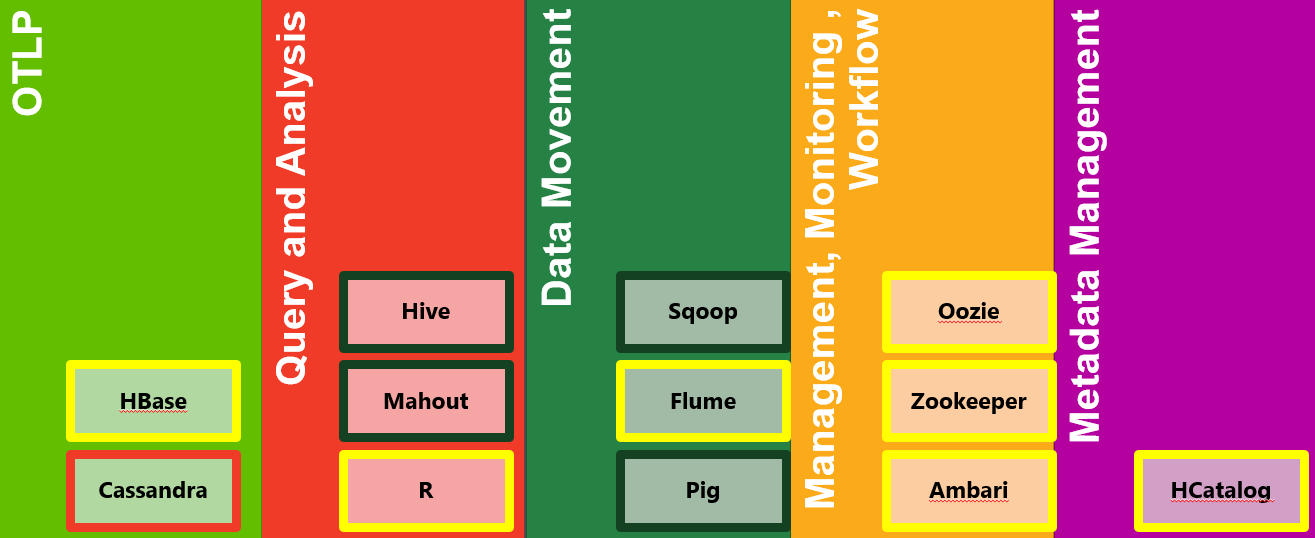 Enterprise Tech What is Big Data April 9, 20164256 views0 Share By IG Share What is Big Data Note: If you buy something from our links, we might earn a commission. See our disclosure statement. Big Data is “Not a Replacement for existing Analytical systems” like Cubes, Data-warehouses etc. Big Data processes both remake, and complement existing analytic workflows by Simplifying production of structured information from emerging “ambient” data sources. When you have non-traditional Datasources like Social media, IOT devices, Automated robotics etc. Big Data allows you to make sense out of these un-structured or semi-structured data into sensible analytical data. So here are the key points: Enabling rapid sense-making over un-enriched and un-modeled data Enabling analytics at scale over ambient data Enabling creation of ambient data driven models Existing systems enable sense-making over modeled data There is tremendous potential value in making sense of ambient data Comparison Chart between an RDBMS System and a Big Data based MapReduce As you process more and more data, and you want interactive response ypically in most cases, you need more expensive hardware to support the infrastructure. Failures at the points of disk and network can be quite problematic and maintaining ACID (atomicity, consistency, isolation, durability) could be a challenge. You can work around this problem with more expensive HW and systems like purchasing Database Appliances from Oracle or Microsoft (ESSBASE, PDW) but adoption would be small due to high costs. In case of Big Data and Hadoop, We are using commodity hardware without the need for specialized and expensive network and disk. Not so much ACID, but we get BASE (basically available, soft state, eventually consistent) Map Reduce (Split, Shuffle) The Hadoop Ecosystem The Hadoop Ecosystem The Hadoop Ecosystem What is NoSQL ? Broadly put, the NoSQL is analogous to OLTP if you imagine Hadoop as a BI system. They are comprised of many components: HBase Cassandra MongoDB CouchBase MemcacheD and more. Implementations of Google’s BigTable – distributed storage system for managing structured data at very large sizes A Bigtable is a sparse, distributed, persistent multidimensional sorted map. The map is indexed by a row key, column key, and a timestamp; each value in the map is an uninterpreted array of bytes. What is HBASE Efficient at Random Reads/Writes Distributed, large scale data store Utilizes Hadoop for persistence Both HBase and Hadoop are distributed Cassandra implementation AT Netflix Source: http://www.slideshare.net/adrianco/migrating-netflix-from-oracle-to-global-cassandra Where did Cassandra originated from? A lot of its origin stems from Facebook. Cassandra was originally created at Facebook. However in case of Facebook messaging, Facebook decided to use HBase instead. Source: http://www.slideshare.net/danirayan/streaming-map-reduce What is HIVE and HIVE Queries This is the favourite method for most SQL Professionals becuase it uses SQL like Queries to query data from Hadoop. It is a “Data warehouse” system for Hadoop. With Hive, you can do the following: Analysis of large datasets stored in HDFS SQL–Like Interface No Java programming needed. Ad-hoc queries via HiveQL (translate into MapReduce) You can connect from PowerQuery, PowerBI or PowerPivot for Excel etc using the Hive ODBC driver or native connectors. Example HIVE Query: CREATE TABLE indro_managed (bar int); LOAD DATA INPATH ‘/user/larar/data.txt’ INTO TABLE indro_managed CREATE EXTERNAL TABLE indro_external (bar int) LOCATION ‘/user/larar/indro_external’; LOAD DATA INPATH ‘/user/larar/data.txt’ INTO TABLE indro_external Comparison Table for RDBMS and Hive What is Mahout? It is a scalable machine learning library that leverages the Hadoop infrastructure Key Use Cases: Recommendation mining: Examine user behavior, build recommendation model Clustering: Grouping data into related topics Classification: Learn from classified documents to assign categories to unlabeled data What is R Programming? Statistical computing and graphing programming language RHIPE: R and Hadoop Integration Open source GNU Project What us Scoop? Data connector system for Hadoop and RDBMS Importing RDBMS data to files (delimited or sequence) in HDFS, or tables in Hive Importing RDBMS query results to files (delimited or sequence) in HDFS, or tables in Hive Exporting files and Hive tables to RDBMS tables Executes MapReduce jobs to transfer data in parallel with fault tolerance What is Pig? It is a Data-flow platform to transform and analyze HDFS data. It have the following benefits: Scripting – No Java Programming Needed! Focus on semantics, not on implementation Extensible through user defined functions and methods Pig can operate on data whether it has metadata or not. Pig is not tied to one particular parallel framework. Pig is designed to be easily controlled and modified by its users. Pig processes data quickly. Read More about Pigs here: http://pig.apache.org/philosophy.html Workflow, Management & Monitoring with Oozie, Ambari, & ZooKeeper What is Oozie? It is a Workflow processing system. Users define a series of jobs written in multiple languages and link them to one another. For example: a particular query is only to be initiated after specified previous jobs on which it relies for data are completed. What is Ambari? It is a management system for monitoring a Hadoop system. With Ambari you can: Install: Wizard for installing Hadoop services across any number of nodes Manage: Central management for starting, stopping, and reconfiguring Hadoop services across the entire cluster Monitor: Dashboard for monitoring health and status of the Hadoop cluster. Sends email alerts when your attention is needed (e.g., a node goes down, remaining disk space is low, etc) What is Zookeeper? It is a Centralized service for mMaintaining configuration information and naming. Providing distributed synch